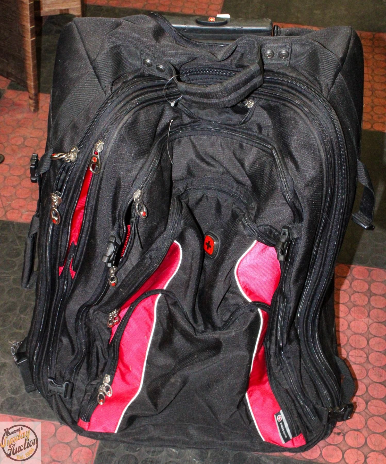 SWISS GEAR LARGE TRAVEL BAG ON WHEELS **ALL ITEMS MUST BE REMOVED BY 5PM SATURDAY, JUNE 14TH 2025. ALL REMAINING ITEMS WILL BE SUBJECT TO A $6.00 PER DAY STORAGE CHARGE. ANY ITEMS REMAINING AFTER MONDAY, JUNE 30TH, 2025 WILL BE CONSIDERED FORFEITED. NO REFUNDS WILL BE ISSUED FOR FORFEITED ITEMS. TO SCHEDULE A PICK UP APPOINTMENT CLICK HERE