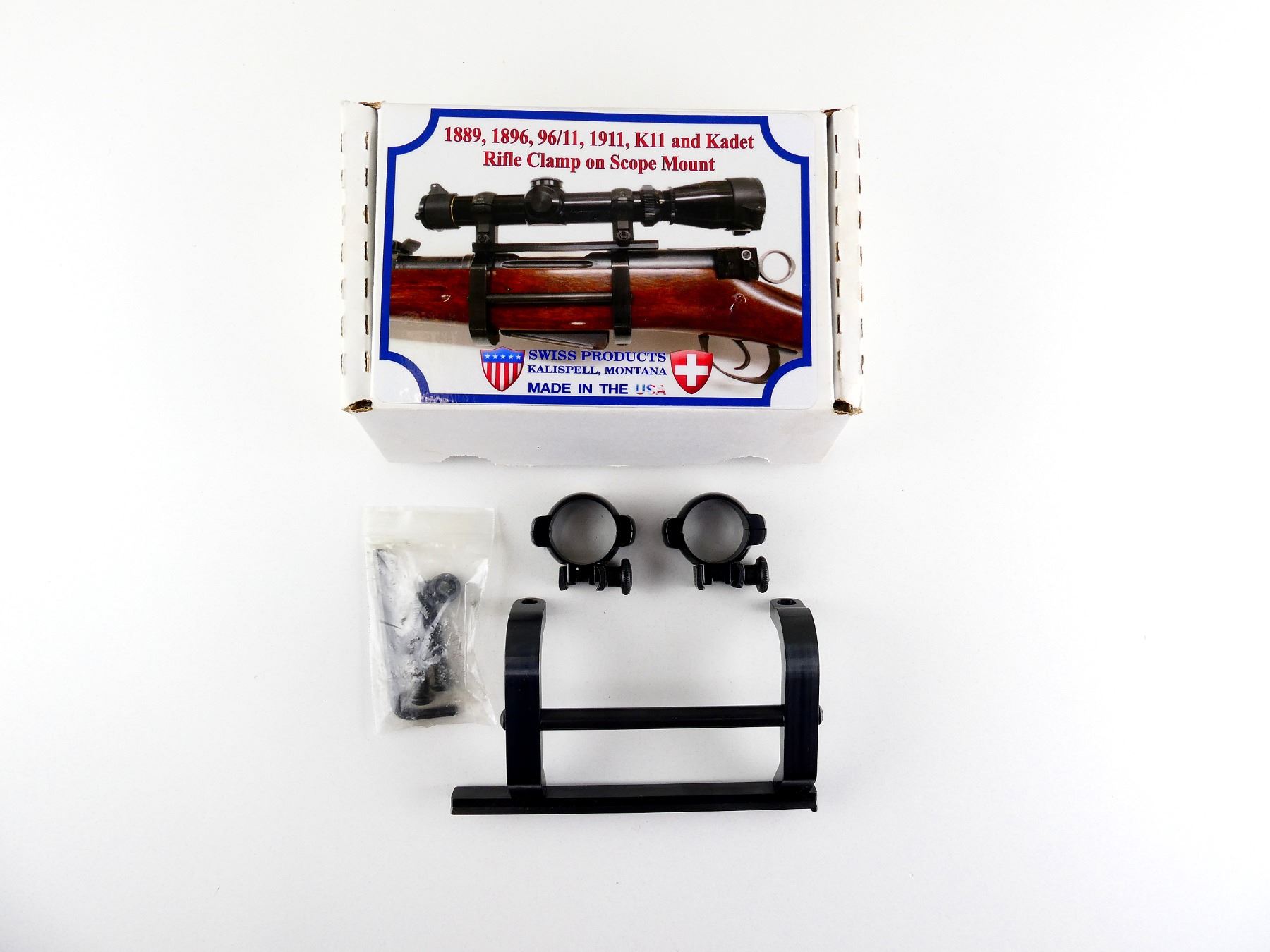 SWISS PRODUCTS USA RIFLE CLAMP-ON SCOPE MOUNT AND SCOPE RINGS LOT