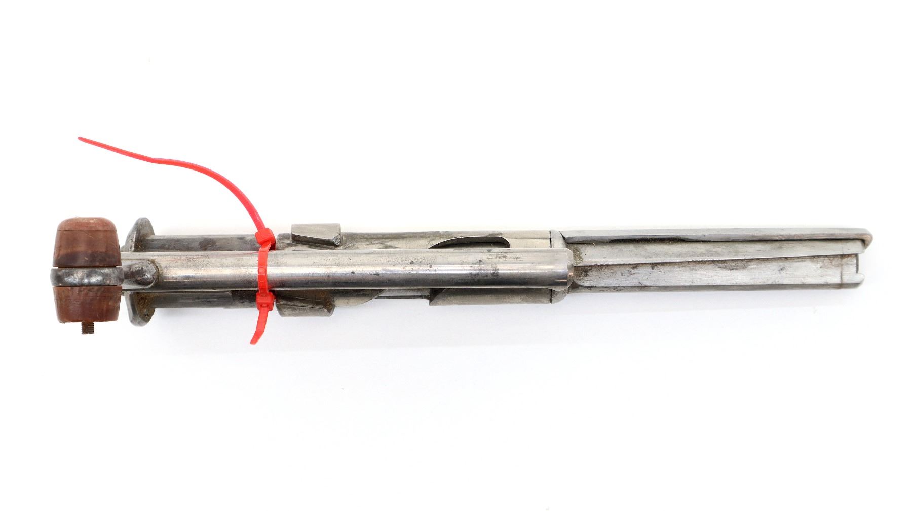 (1) BOLT, STEEL, INCOMPLETE, DAMAGED KNOB, MISSING FIRING PIN PARTS, INCLUDES TRIGGER GUARD, MARKED: "198110", OVERALL LENGTH APPROX. 11". MAY REQUIRE FITTING. SEE PHOTOS.