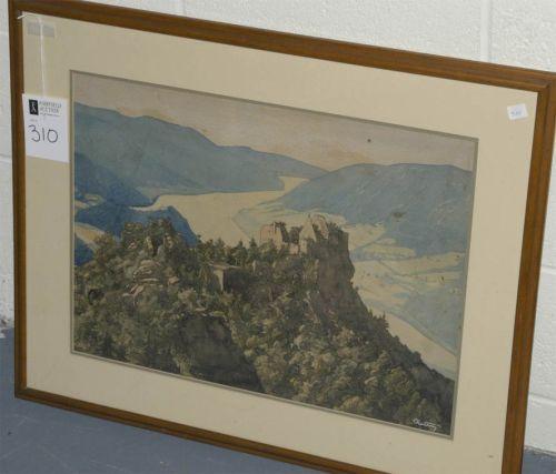 SWISS SCHOOL WATERCOLOR, 16"x21", signed lr indistinctly, SHIPPING: See recommended third party shippers. This item can't be packed or shipped by seller.,