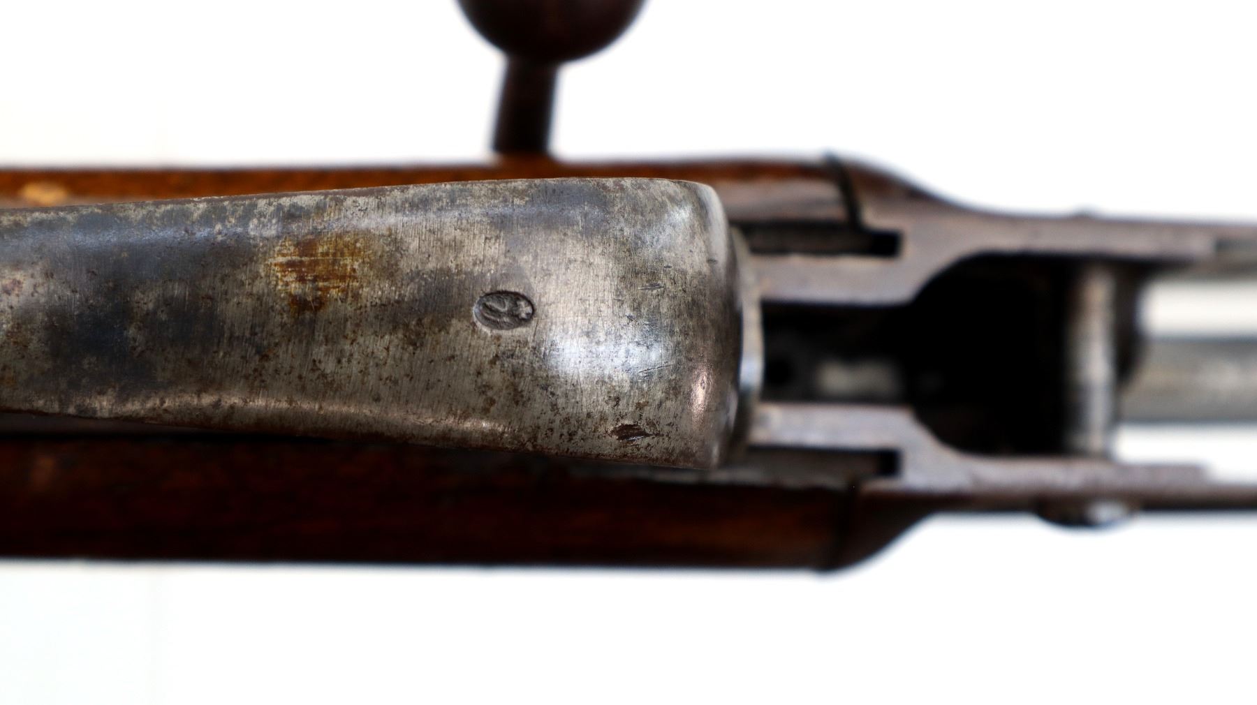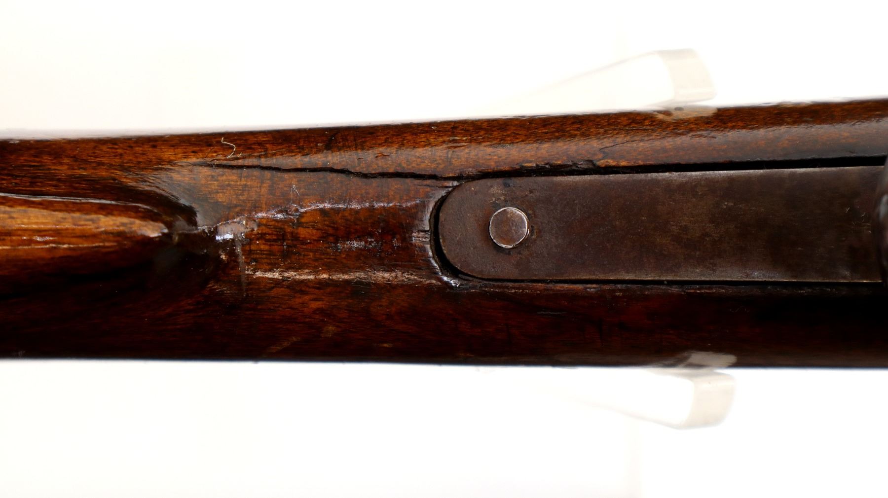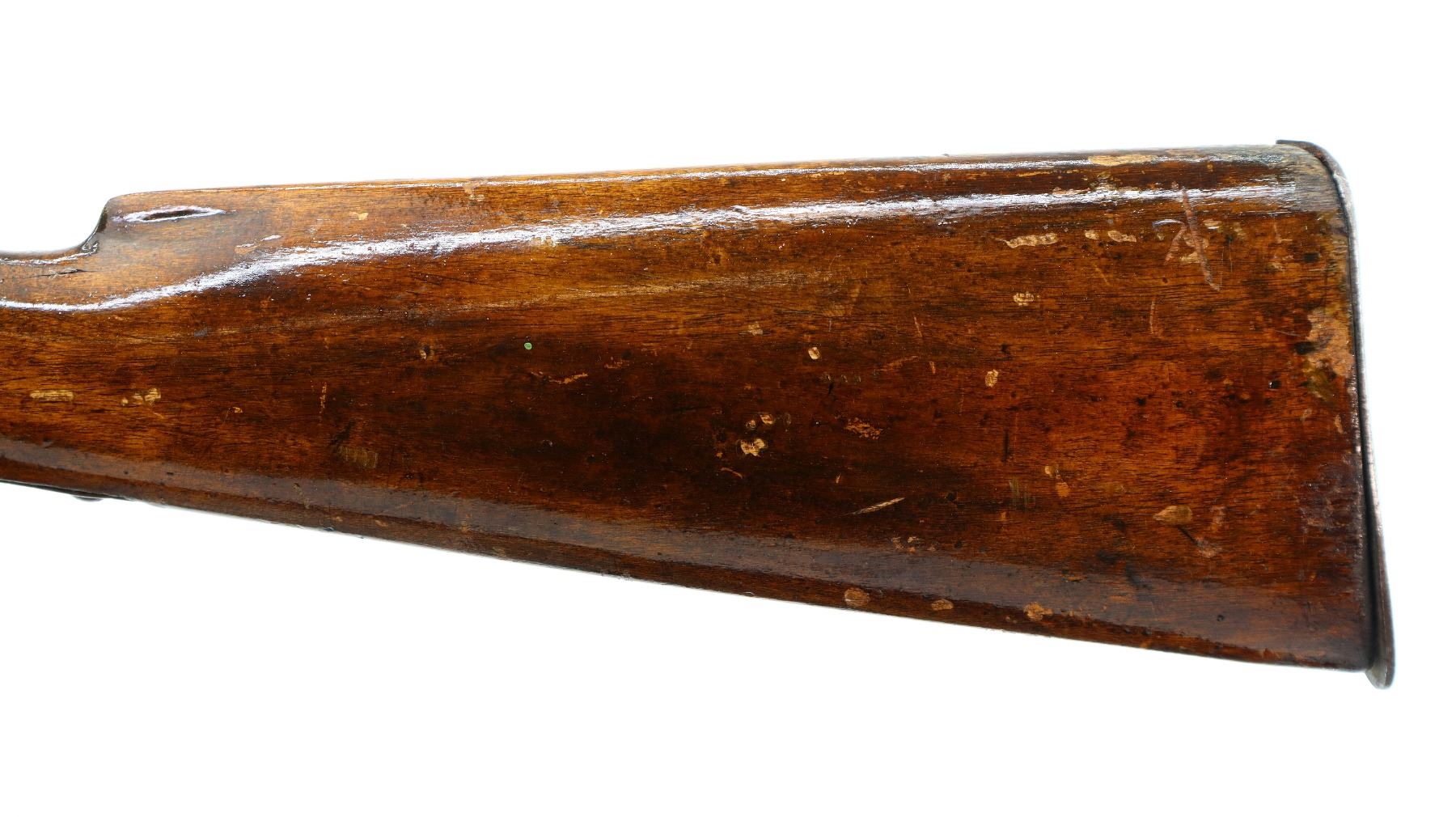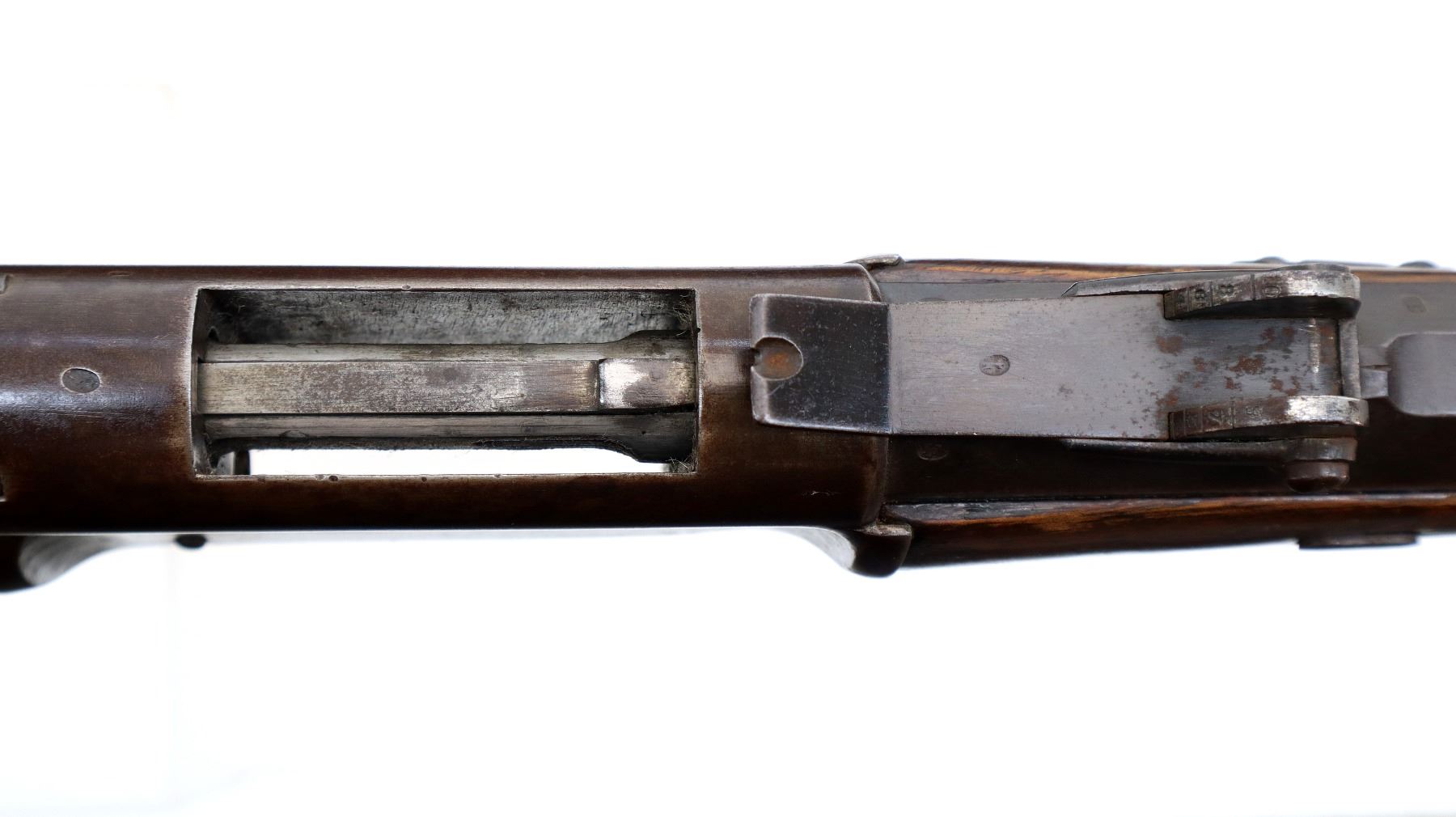 Wear: Metal finish turning brown with light pitting, rust speckles, scratches, handling marks and wear. Stocks show marks, scratches and wear.