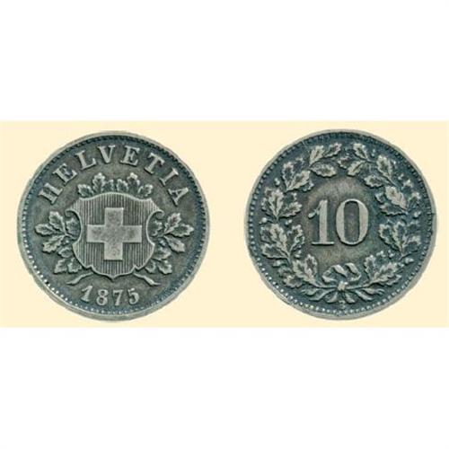 SWITZERLAND COINS 10 Centimes 1875, Bern. DT 313; HMZ 1230.<b