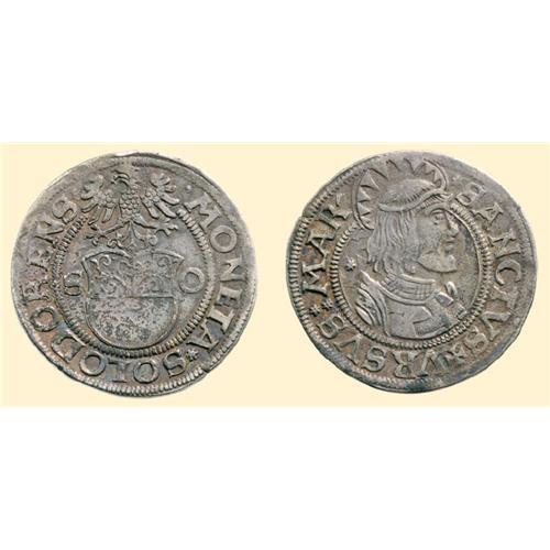 Teston, undated but 16th century. Arms between S-O, eagle above / Bust of Saint Ursus right. Simmen 40a; HMZ 844.