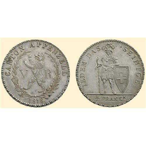 Thaler 1816. Bear left between laurel branches / Soldier with shield. DT. 155; HMZ 51; Dav 360.