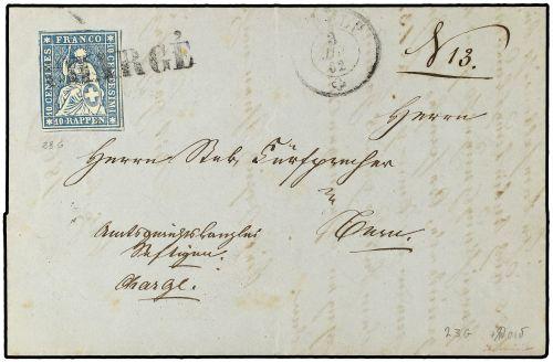 23G 1862 CULP. 10 Rp. azul. Matasellos CHARGEE en negro (AW nº654). MAGNIFICA. Cert. V. d. WEID y NUSSBAUM.