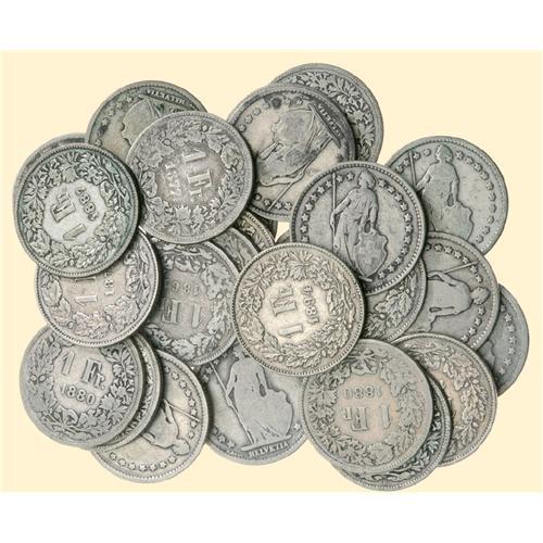 Lot of 25 coins of 1Fr. from 1861 to 1901. An interesting lot with scarce dates from the 19th century.