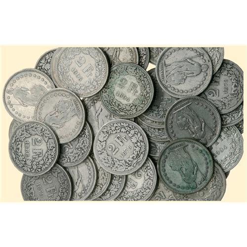 Lot of 44 coins of 2 Fr. from 1874 to 1909. An interesting lot with scarce dates mainly from the 19th century.