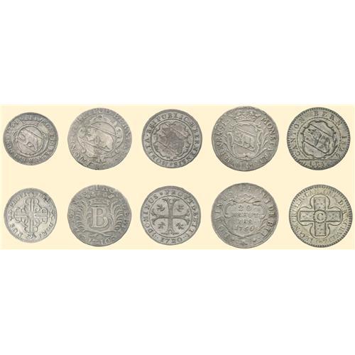 Lot of 5 coins including 20 Kreuzer 1716 (DT 514a; HMZ 220); 20 Kreuzer 1756 (DT 515b; HMZ 220); 10 Kreutzer 1764 (DT 522b; HMZ 221); 1 Batz 1826 (DT 42b; HMZ 234); 2 Kreutzer 1720 (DT 525c; HMZ 223).