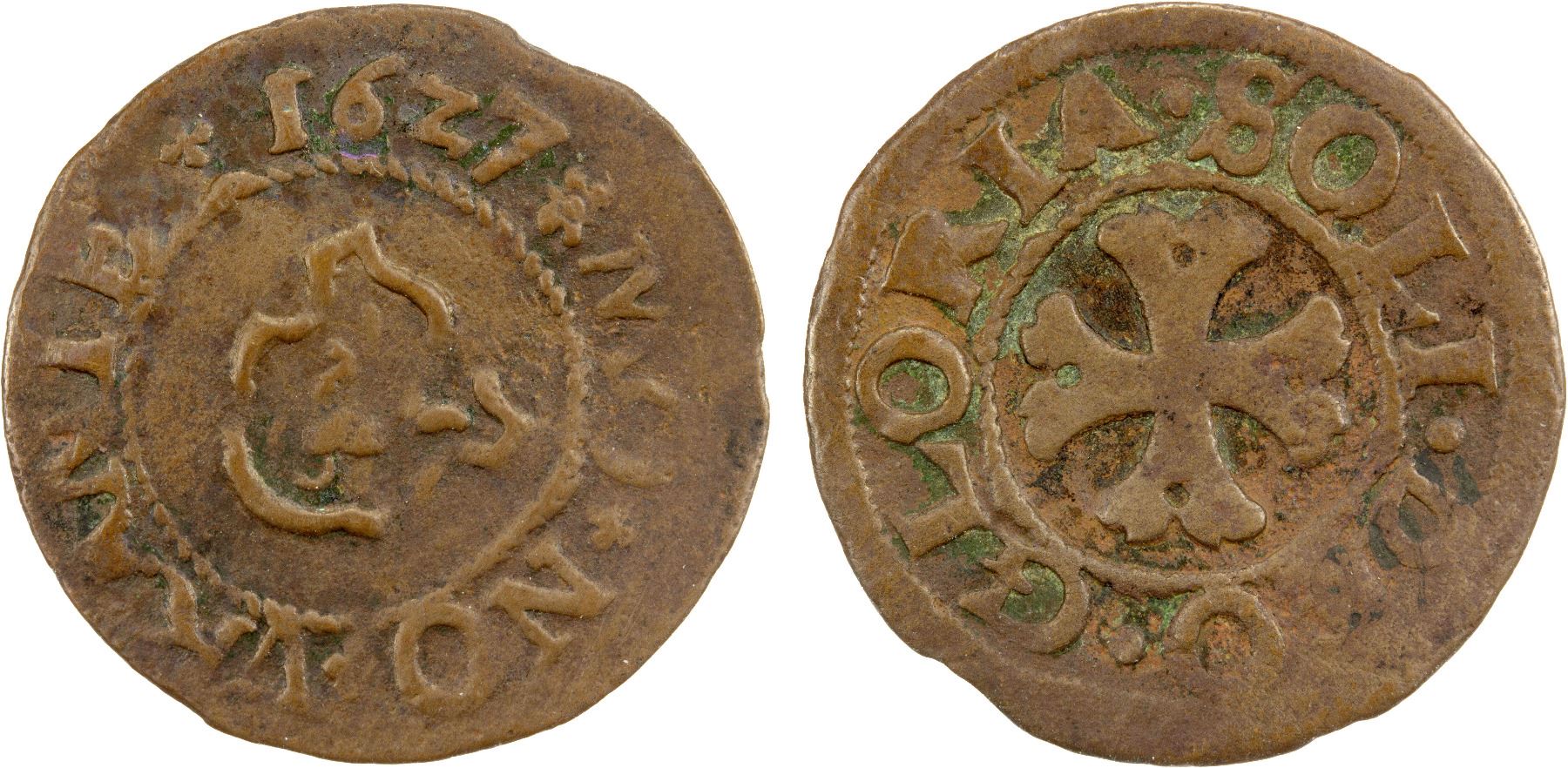 URI: Canton, AE kreuzer, 16Z7, KM-23, HMZ-2-923, somewhat crude, F-VF, ex Joe Sedillot Collection.