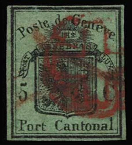 1847-48 Large Eagle black on yellow-green (SG G4) four margins, used with red cancel, Philatelic Foundation Cert (1966) cat £1,300, also Luxembourg 1852 10c used