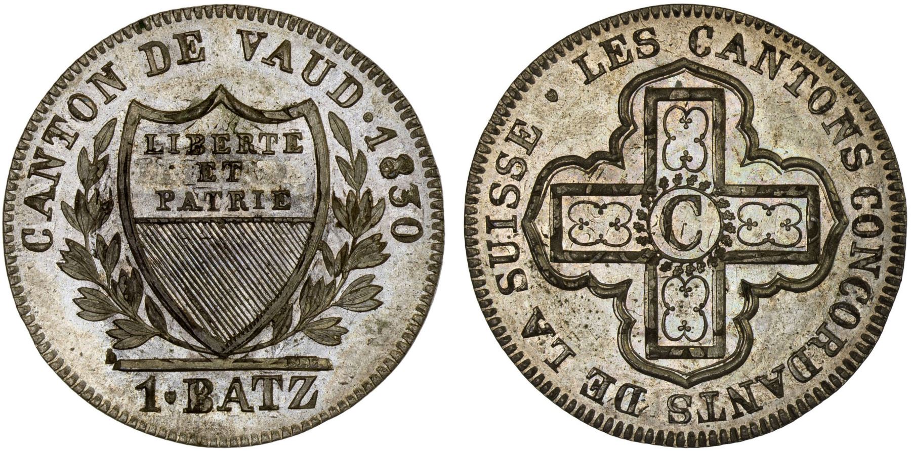 VAUD: Canton, BI batzen, 1830, KM-20, HMZ 2# 1004, attractive example with the slightest handling marks in the fields, Unc.