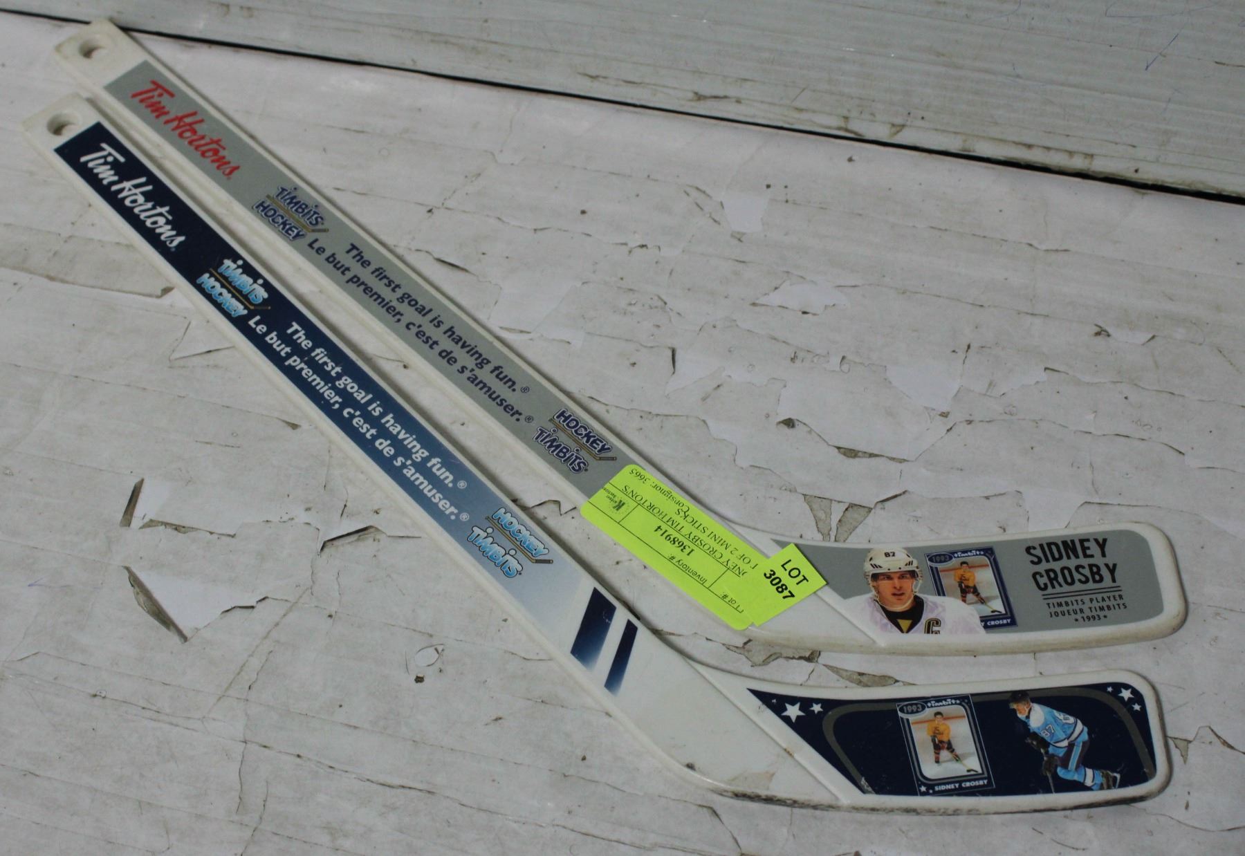 SYDNEY CROSBY TIM HORTON'S LOT OF 2 MINI STICKS