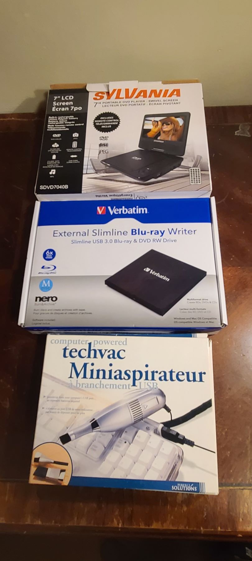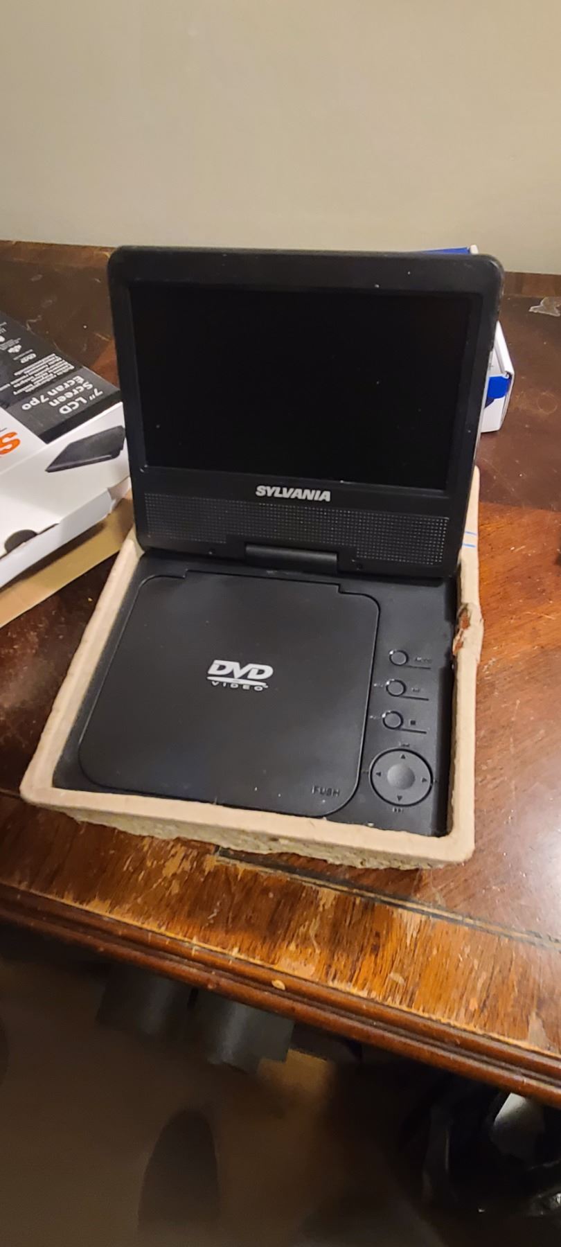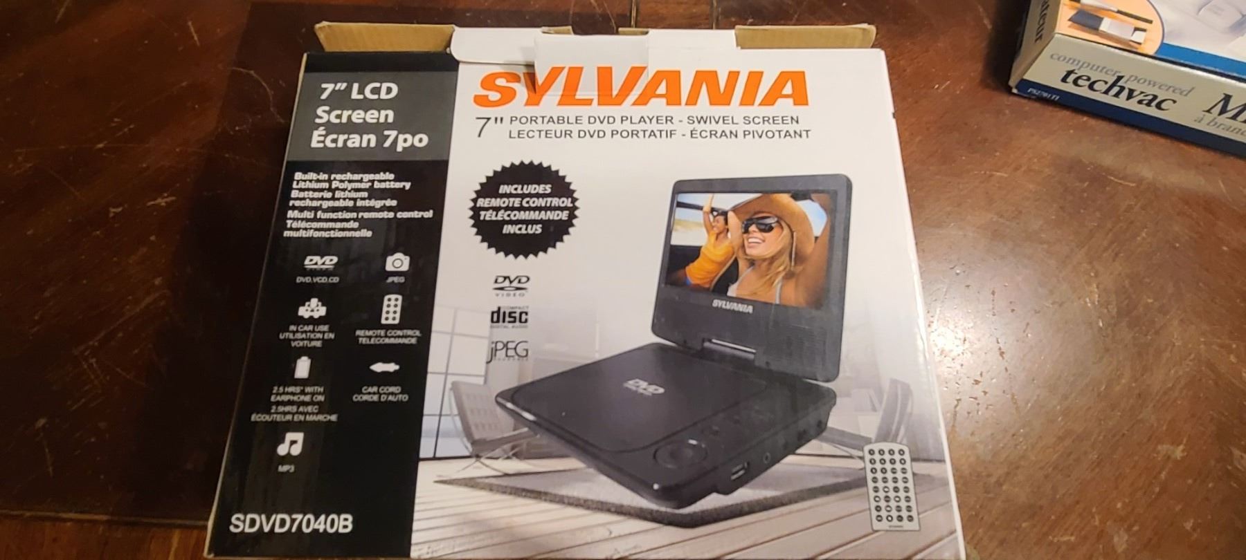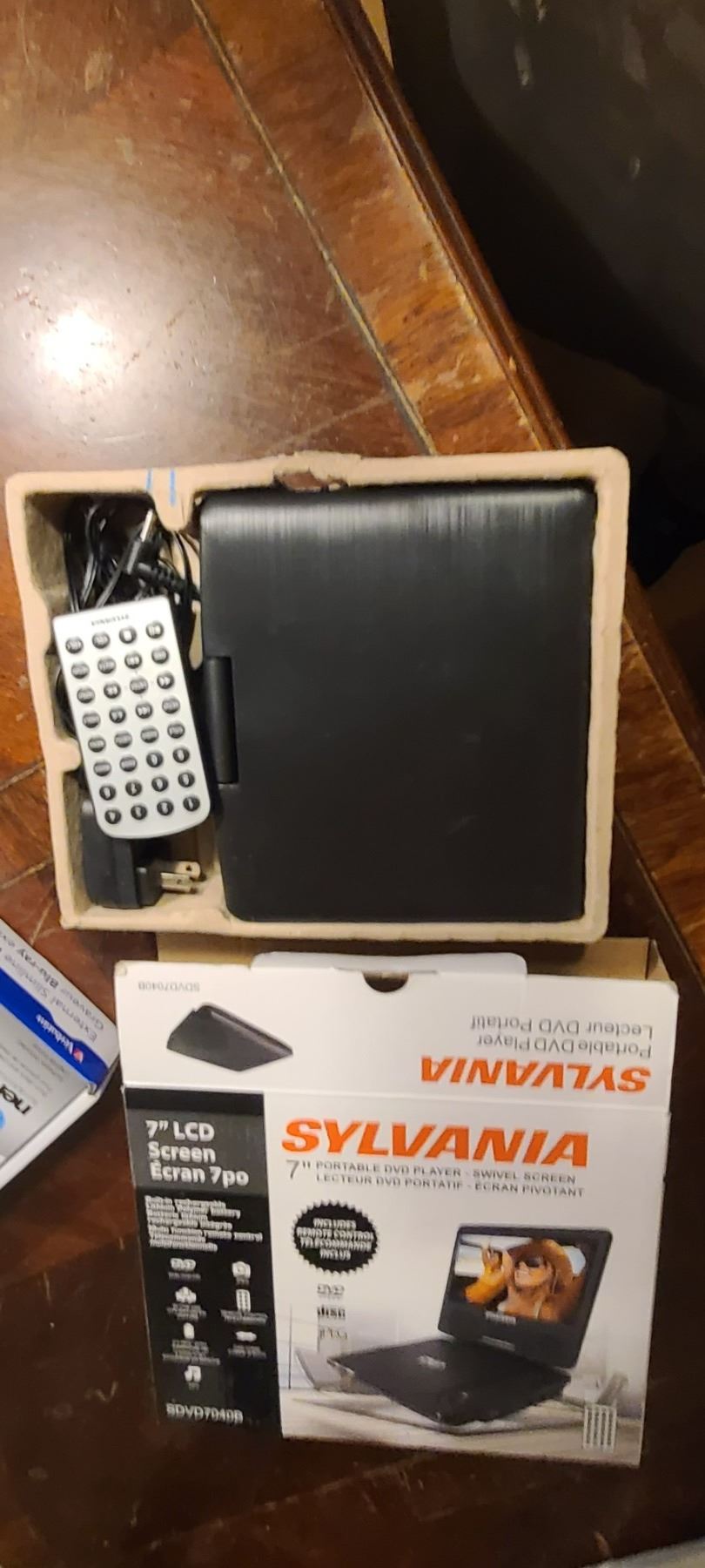 SYLVANIA PORTABLE DVD PLAYER 7" SCREEN, KEYBOARD CLEANER AND SLIM LINE BLUE RAY WRITE