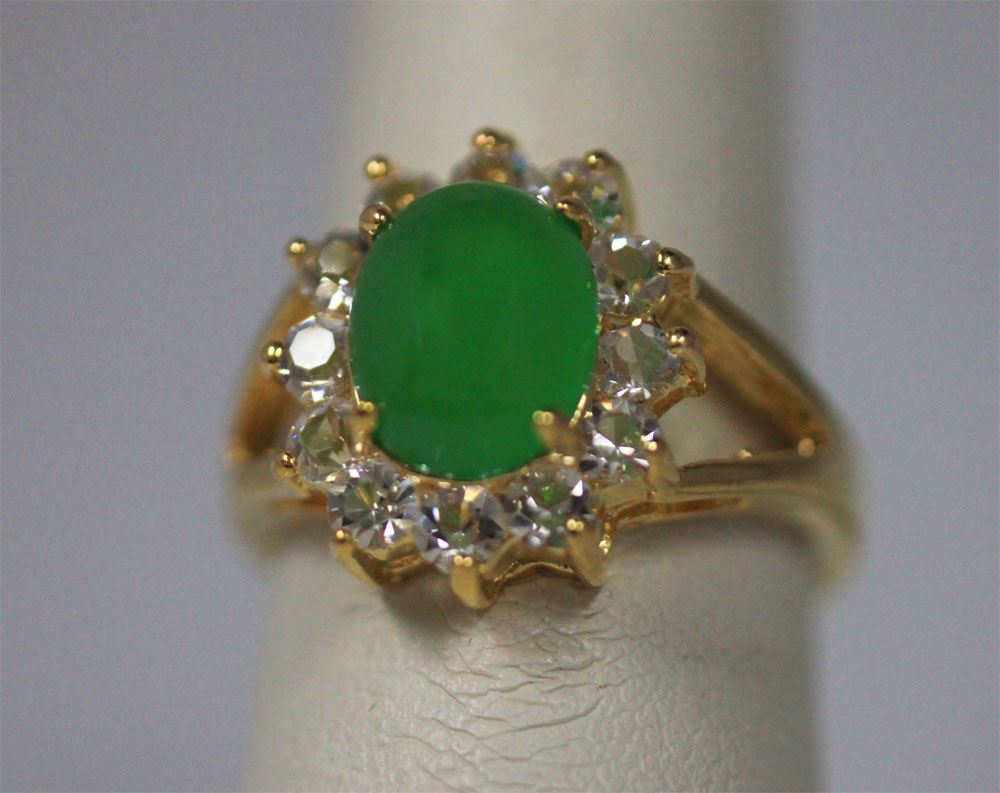 SYNTETIC JADE AND CZ 14K GOLD PLATED RING **|**|** SYNTETIC JADE AND CZ 14K GOLD PLATED RING