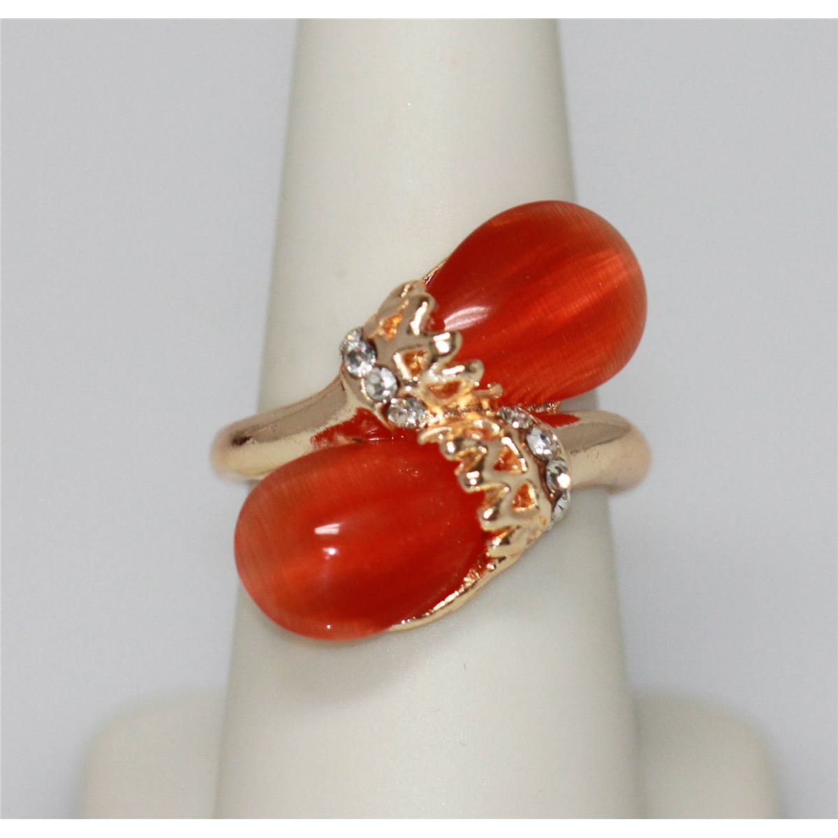 SYNTHETIC ORANGE STONE AND CZ BRASS FASHION JEWELRY RIN **|**|** SYNTHETIC ORANGE STONE AND CZ BRASS FASHION JEWELRY RING