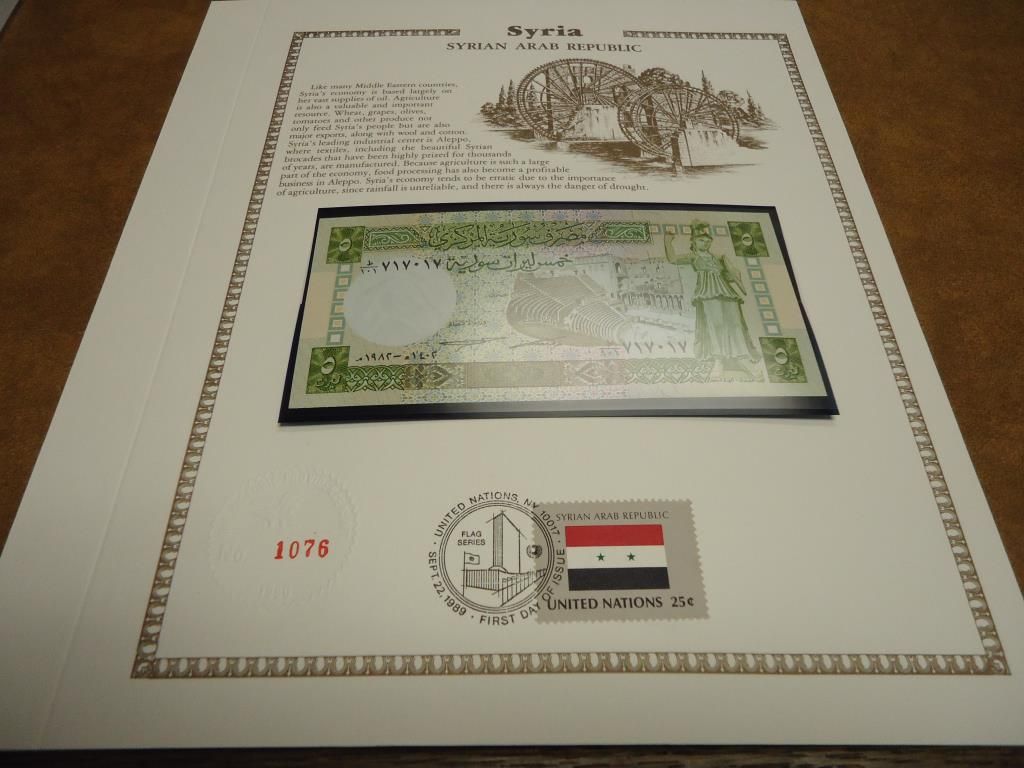SYRIA CRISP UNC CURRENCY AND STAMP SET