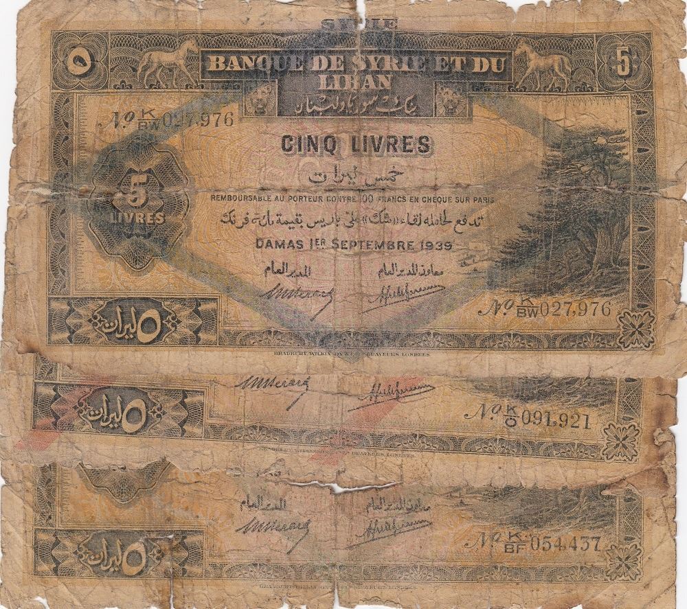 Syria, 5 Livres, 1939, POOR, p41, (Total 3 banknotes)