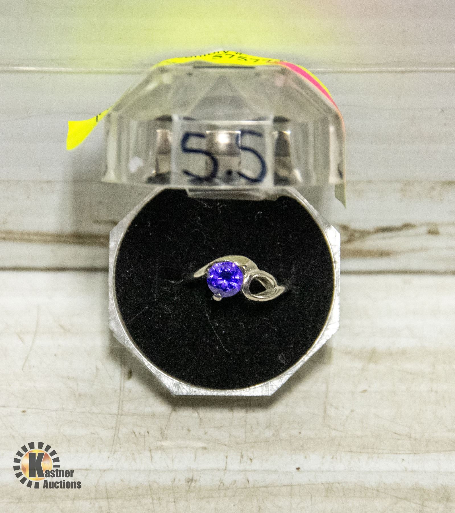 SZ 5.5 PURPLE STONE SILVER PLATED RING