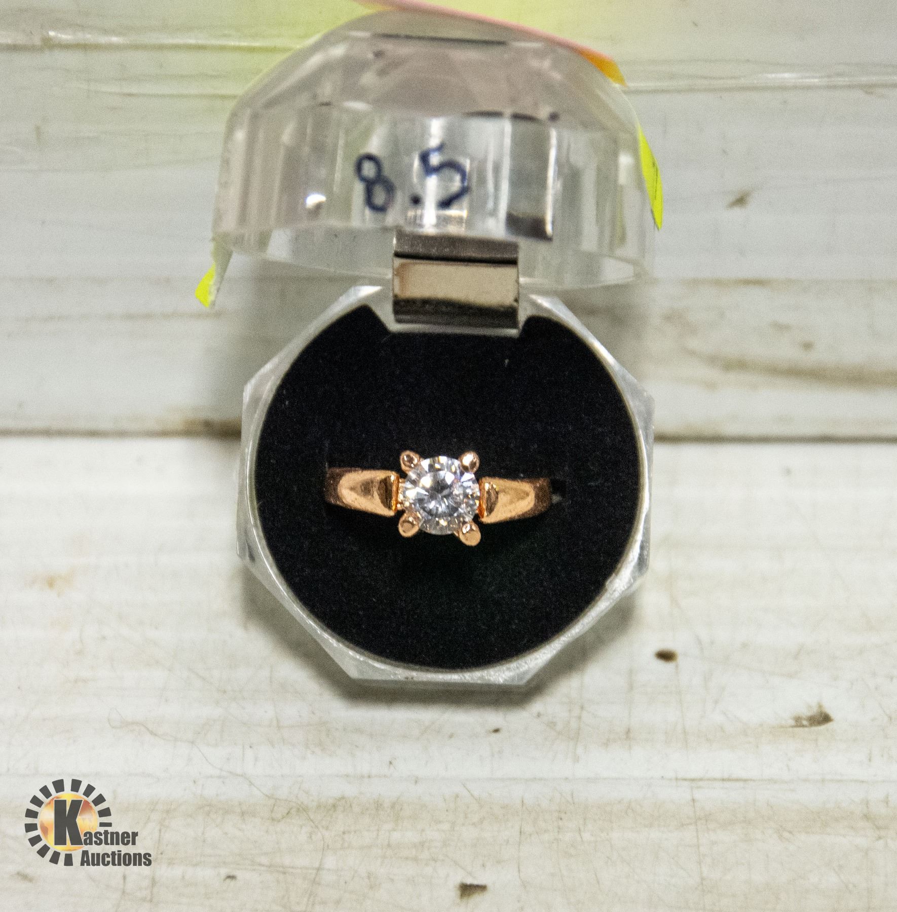 SZ 8.5 CZ SOLITARE GOLD PLATED