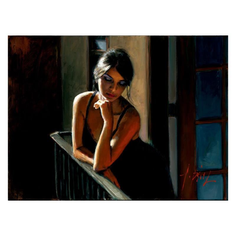 "Saba at the Balcony" is a hand embellished limited edition giclee on stretched canvas by Fabian Perez. The piece is numbered and hand signed by the artist and comes with a Certificate of Authenticity. Measures approx. 30" x 40" (image). Please allow 5 additional business for items that include canvas stretch or framing.
