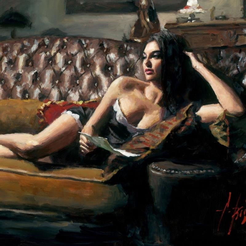 "Saba with Letter V" is a hand embellished limited edition giclee on stretched canvas by Fabian Perez. The piece is numbered and hand signed by the artist and comes with a Certificate of Authenticity. Measures approx. 30" x 45" (image). Please allow 5 additional business for items that include canvas stretch or framing.