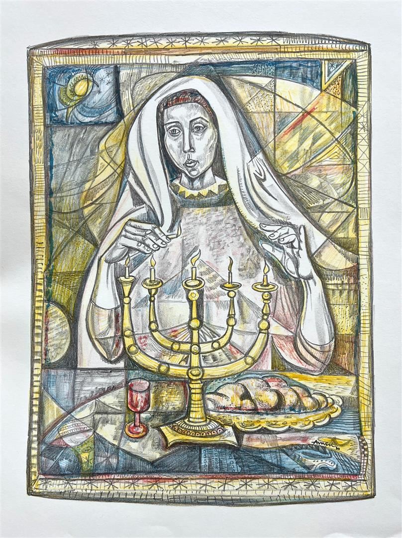 Sabbath Blessing by Amen, Irving. Open Plate Signed Offset Lithograph. Dimensions: 23 x 17. Excellent Condition.