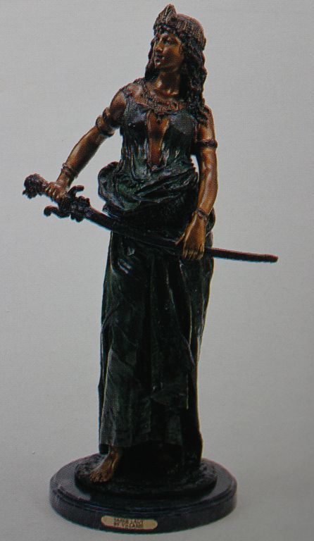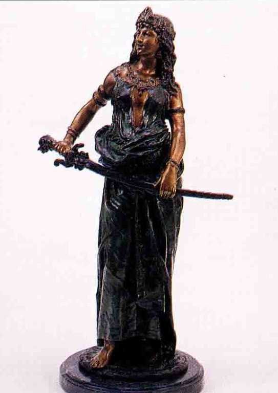 "Saber Lady" Bronze Sculpture - After Villanis - Museum Brown Finish - Mounted On Fine Italian Marble Base - Signed - Mint Condition - 34"H X 11"W - Lost Wax Cast Bronze