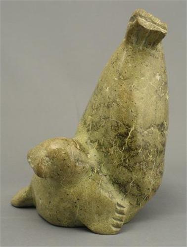 [Hall Beach NWT 20th century] WALRUS Mottled green stone carving 6 1/4 ins. high -Signed