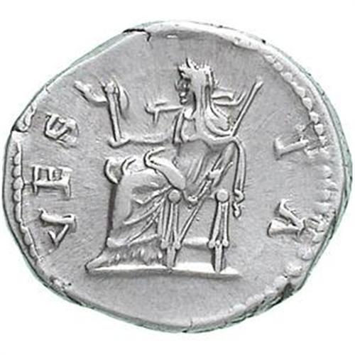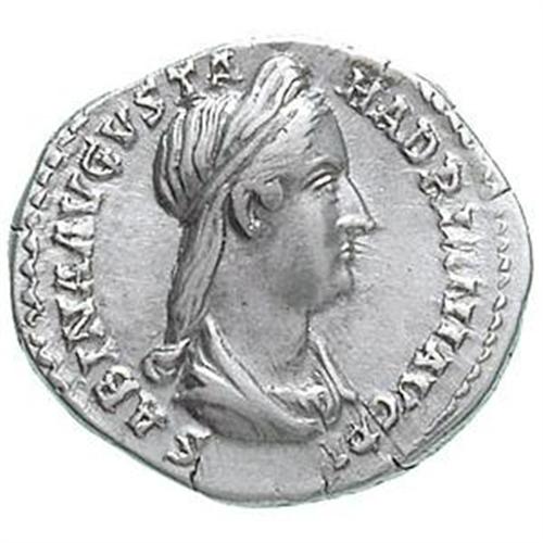 Roman Empire Coins. Sabina, moglie di Hadrian (deceduta nel 137 d.C.). Denarius. D/ SABINA AVGVSTA HADRIANI AVG PP. Busto diademato e drappeggiato a destra. R/ VESTA. Vesta, seduta a sinistra, tiene Palladio e scettro. RIC 410. gr. 3.20 AG. qSPL/BB+.