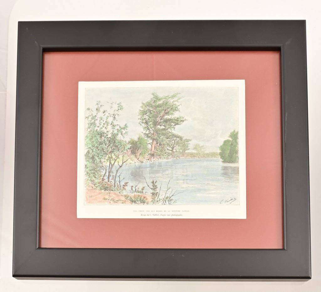 The Sabine River, Texas. Vue prise sur les bords de la riviere Sabine. (View taken on the banks of the Sabine River). French. G. Vuillier after a photograph. Contemporary hand color. 19th Century.