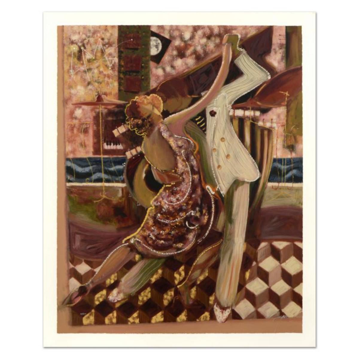 "Sabzi Tango II" is a limited edition hand embellished giclee on paper by Sabzi, numbered and hand signed by the artist. Includes Certificate of Authenticity. Measures approx. 39.5" x 48" (border); 35" x 44" (image). Reference #: 221071
