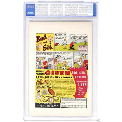 50. Since we cannot examine encapsulated notes or comics, they are sold "as is" without our grading opinion, and may not be returned for any reason. Auctioneer shall not be liable for any patent or latent defect or controversy pertaining to or arising from any encapsulated collectible. In any such instance, purchaser's remedy, if any, shall be solely against the service certifying the collectible.
