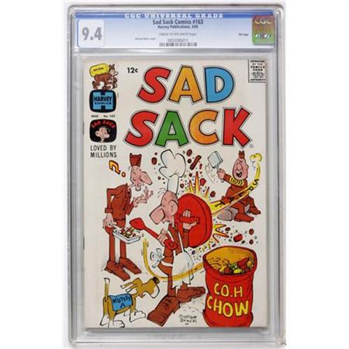 <B>Sad Sack Comics #163 File Copy (Harvey, 1965) CGC NM 9.4 Cream to off-white pages.</B></I> George Baker cover. Overstreet 2007 NM- 9.2 value = $20. CGC census 10/07: 1 in 9.4, none higher.<BR><BR><b>Shipping:</b> Comics - Slabbed (certified) (<a target="_blank" href="http://www.heritageauctions.com/common/shipping.php">view shipping information</a>)