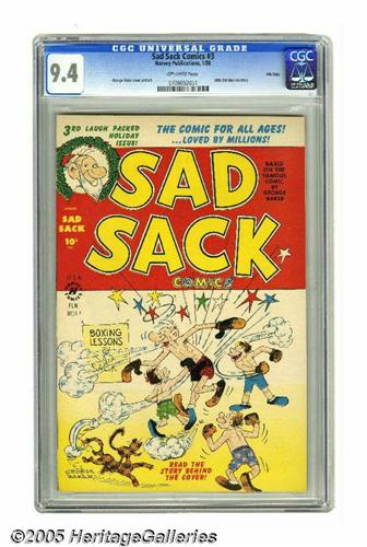 <B>Sad Sack Comics #3 File Copy (Harvey, 1950) CGC NM 9.4 Off-white pages.</B></I> This Christmas issue features a Little Dot story in addition to the star, Sad Sack, who's drawn by George Baker. Overstreet 2005 NM- 9.2 value = $210. CGC census 3/05: 4 in 9.4, 2 higher.