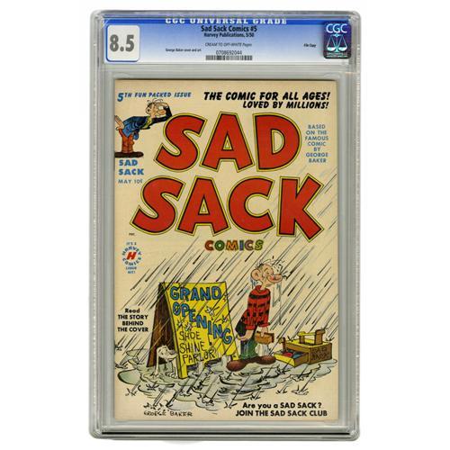 <B>Sad Sack Comics #5 File Copy (Harvey, 1950) CGC VF+ 8.5 Cream to off-white pages.</B></I> George Baker art. Overstreet 2006 VF 8.0 value = $75; VF/NM 9.0 value = $118. CGC census 4/06: 4 in 8.5, 4 higher.
