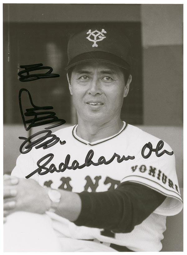 Glossy 4.5 x 6.5 photo of Oh in his Giants uniform, signed in black felt tip, adding several Japanese characters above his signature. In fine condition, with a couple scattered light surface dings.