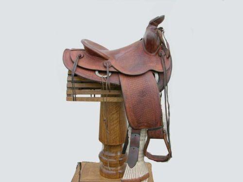 Saddle - beautiful brown hand tooled by famous saddle maker H. H. Heiser, Denver, CO. Circa 1940's. This saddle is almost like new.
