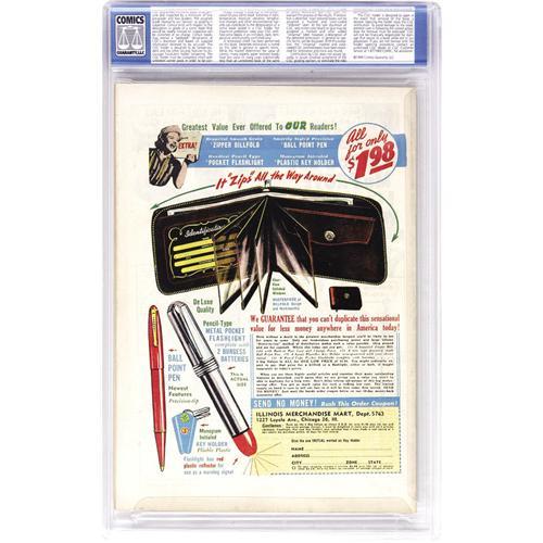 50. Since we cannot examine encapsulated notes or comics, they are sold "as is" without our grading opinion, and may not be returned for any reason. Auctioneer shall not be liable for any patent or latent defect or controversy pertaining to or arising from any encapsulated collectible. In any such instance, purchaser's remedy, if any, shall be solely against the service certifying the collectible.