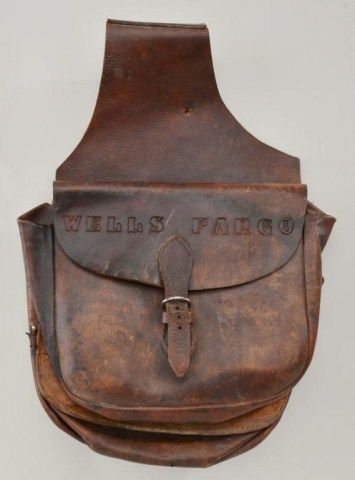 Saddle bags made in the last 30 years with Wells Fargo in stamped letters; good for re-enactors; good condition. Est.: $75-$150.