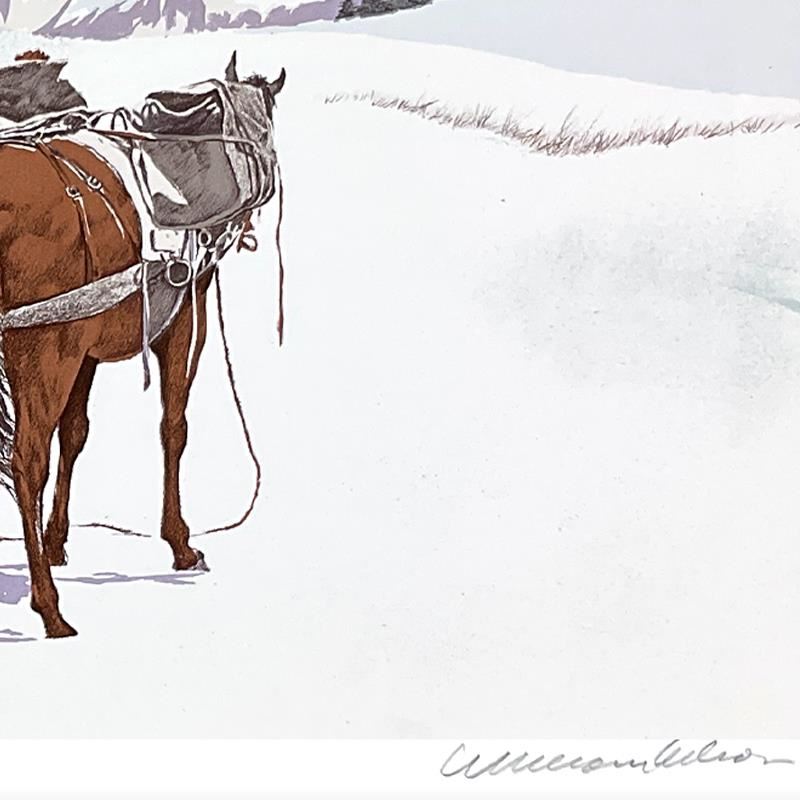Saddling Up by Nelson, William. "Saddling Up" is a limited edition lithograph on paper, numbered and hand signed by William Nelson. Includes Letter of Authenticity. Measures approx. 29" x 22" (border), 25" x 18" (image). There may be minor imperfections i