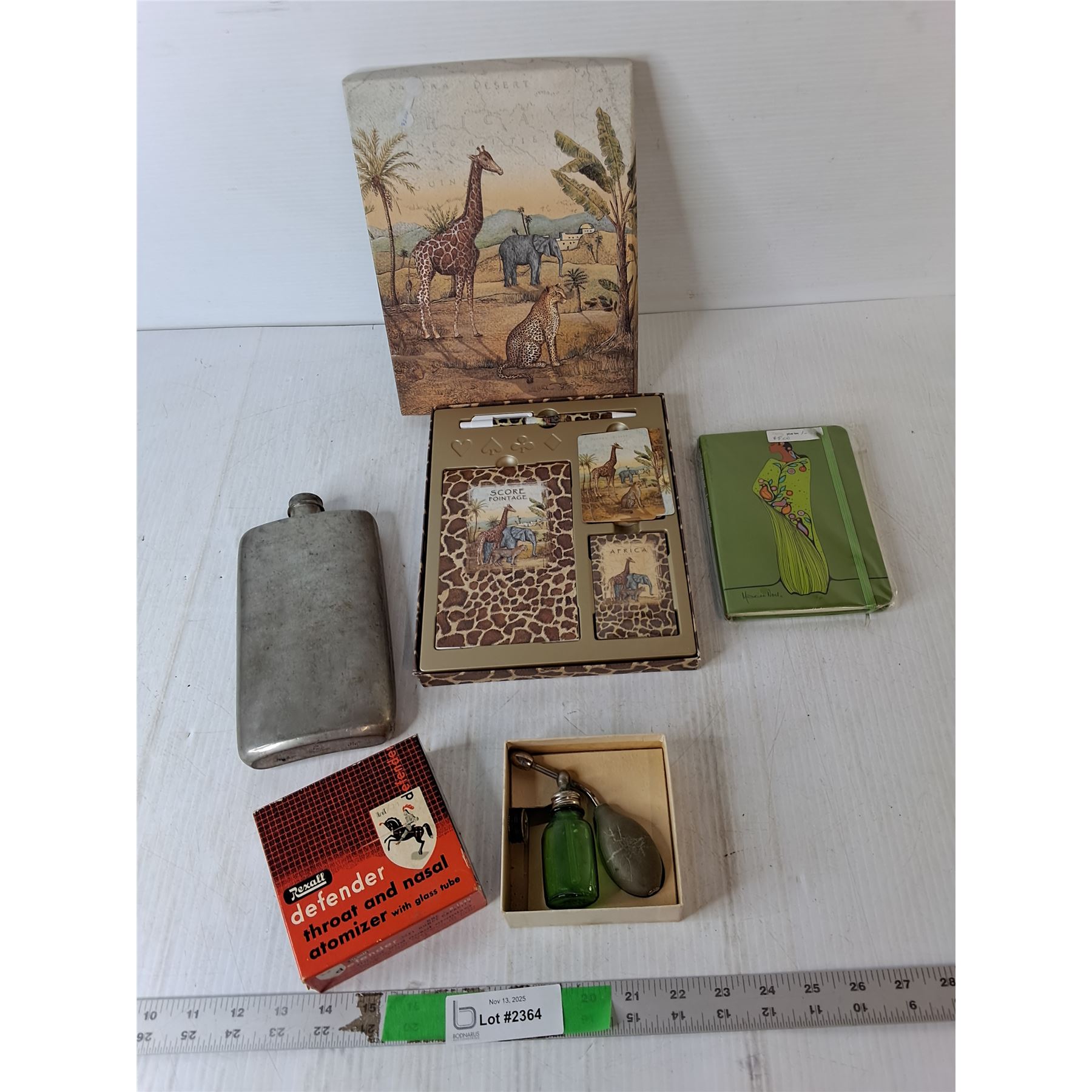 Safari Stationary Set, Vintage Throat Atomizer & Canteen, Journal