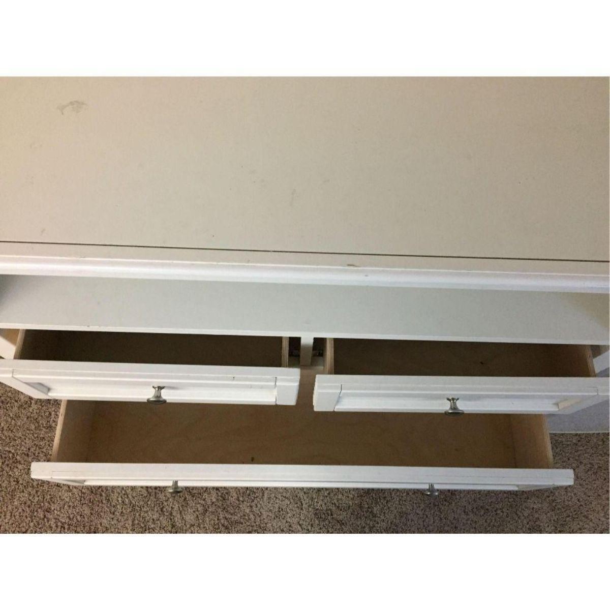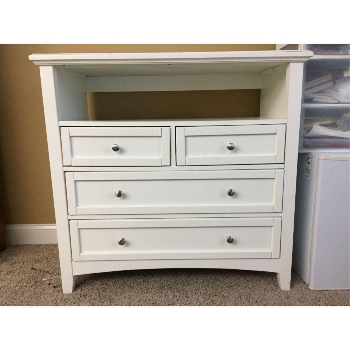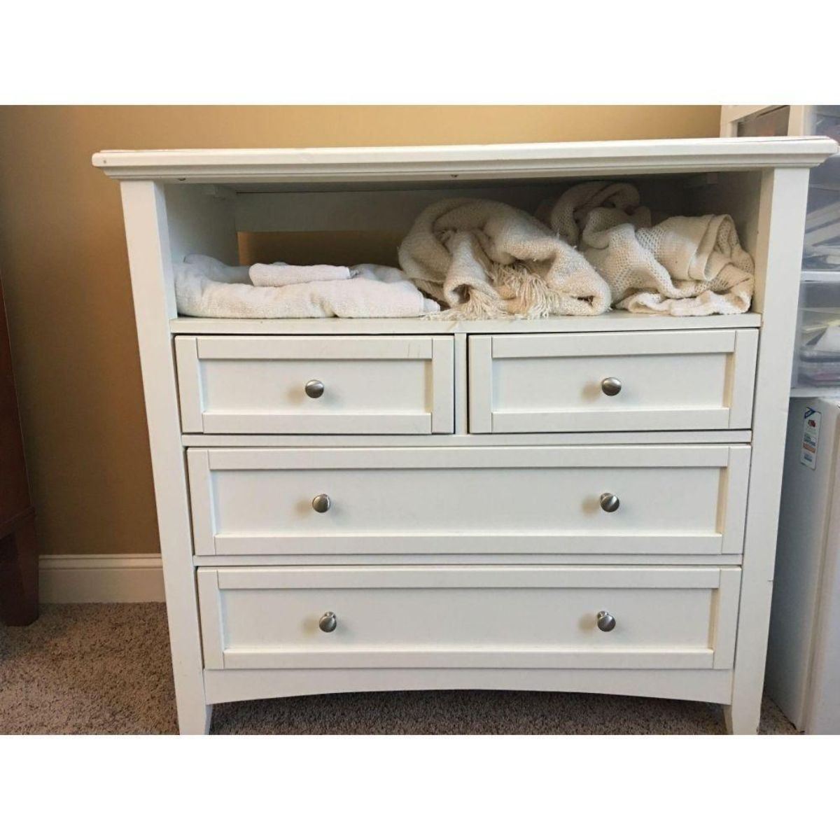 Some splitting on top corners but otherwise in good condition. Four drawer with console top solid dresser.Â