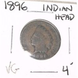 1896 INDIAN HEAD PENNY RED BOOK VALUE $4.00+ *NICE EARLY VERY GOOD GRADE*!! PENNY CAME OUT OF SAFE!!