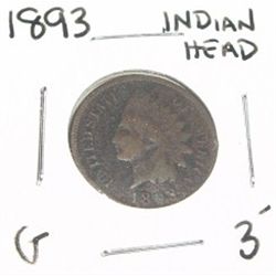 1893 INDIAN HEAD PENNY RED BOOK VALUE $3.00+ *NICE EARLY GOOD GRADE*!! PENNY CAME OUT OF SAFE!! ***Coin, Currency & All Items Listed in this auc...