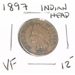1897 INDIAN HEAD PENNY RED BOOK VALUE $12.00+ *NICE EARLY VERY FINE GRADE*!! PENNY CAME OUT OF SAFE!