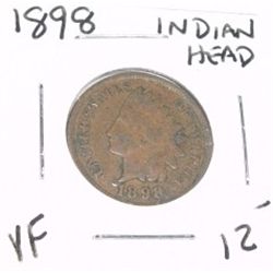 1898 INDIAN HEAD PENNY RED BOOK VALUE $12.00+ *NICE EARLY VERY FINE GRADE*!! PENNY CAME OUT OF SAFE!