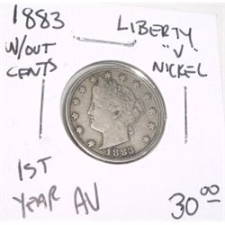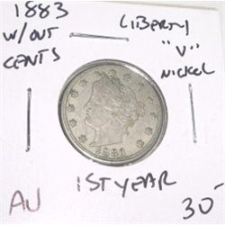 1883 W/OUT CENTS *1ST YEAR* LIBERTY "V" NICKEL *RARE AU HIGH GRADE* RED BOOK VALUE IS $30.00+!!