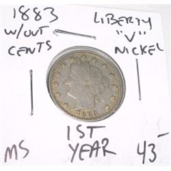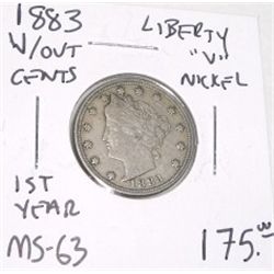 1883 *RARE-1ST YEAR* LIBERTY "V" NICKEL *RARE MS HIGH GRADE* RED BOOK VALUE IS $43.00+!! COIN CAME O