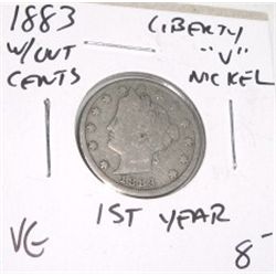 1883 W/OUT CENTS *1ST YEAR* LIBERTY "V" NICKEL *RARE EXTRA FINE GRADE* RED BOOK VALUE IS $17.00+!!