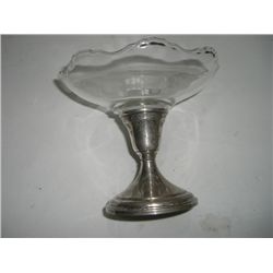 HEAVY CANDY DISH WITH THICK GLASS TOP AND WEIGHTED STERLING SILVER BASE STAMPED *B-I STERLING WEIGHTED!! CANDY DISH CAME OUT OF SAFE!! ***Coin, Curren
